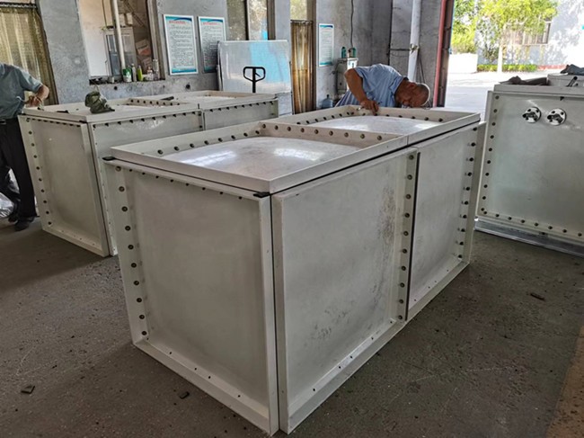 玻璃鋼水箱可分為三層結(jié)構(gòu),即內(nèi)襯層、結(jié)構(gòu)層和外表層。其功能各為:內(nèi)襯層主要起耐腐、不滲作用;結(jié)構(gòu)層承受荷載引起的應(yīng)力;外保護(hù)層則用于自然老化和摩擦碰撞。