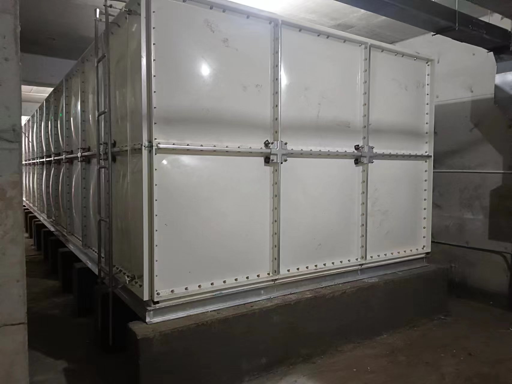 我司承接的河北省滄州市吳橋縣吳橋騰輝科技發(fā)展有限公司璃鋼消防水箱項目,已安裝試水完畢。SMC組合式玻璃鋼水箱是采用的新型水箱。由整體優(yōu)質(zhì)的SMC水箱板拼裝而成。其特點是采用不飽和樹脂,具有強(qiáng)度高,重量輕,耐腐蝕,外型美觀,使用壽命長,保養(yǎng)管理方便等特點。