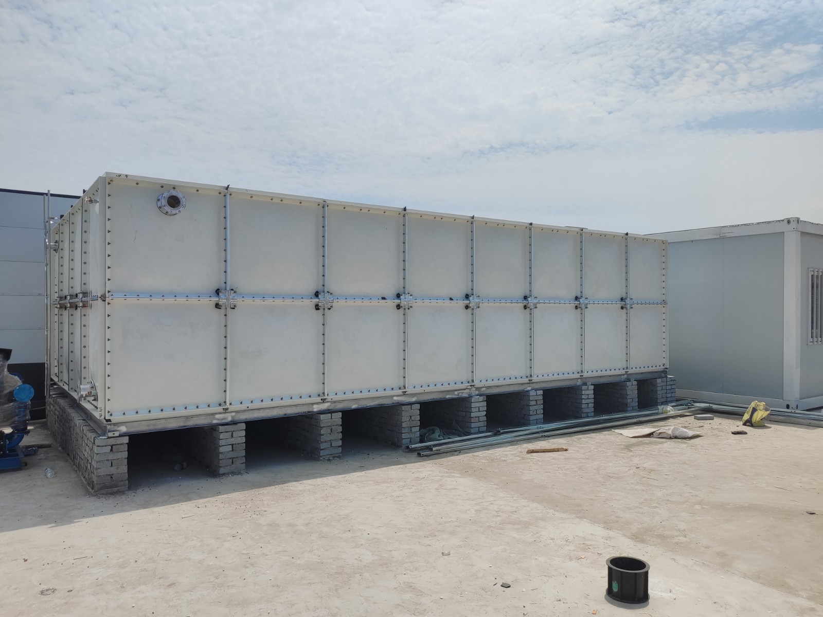 我司承接的山東省濟寧市濟南城建項目,玻璃鋼消防水箱已經(jīng)安裝完成。玻璃鋼保溫水箱是由SMC模壓板塊、密封材料、金屬結(jié)構(gòu)件及配管系統(tǒng)現(xiàn)場組裝而成。可根據(jù)用戶需要靈活組裝,若原有水箱需要更換,不需要改造房屋,適應(yīng)性很強。水箱整體強度高,無滲漏,無變行,保養(yǎng),檢修方便。