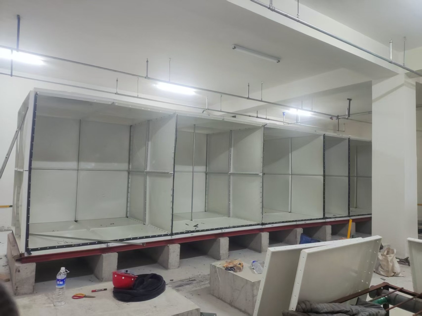 SMC組合式玻璃鋼水箱是一種普遍采用的儲水方式。是由SMC單元板現(xiàn)場組裝而成的一種水箱。單元板用SMC(sheet moulding compound)片材在高溫高壓下模壓成型,水箱內(nèi)采用加強(qiáng)式支撐,其鋼配件選用熱鍍鋅件和不銹鋼件均可。板塊厚度的選取依據(jù)板塊所受的壓力和所處的位置。有5mm、8mm、10mm、12mm、14mm、16mm等。
